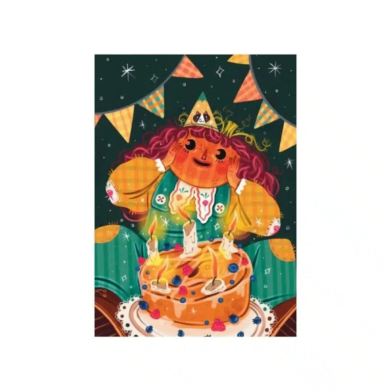 The Pumpkin Girl mini puzzle by Trevell is a mini puzzle consisting of 99 pieces. Illustrated by Laura Proietti, this puzzle invites you to Pumpkin's birthday party! The banners are hung, the atmosphere is cozy... it's time to make a wish and blow out the candles. Who wants a piece of cake?