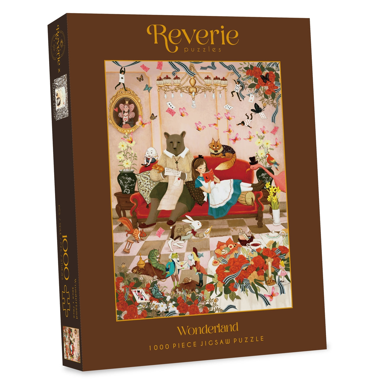 A collaboration with Naoko Stoop featuring her signature cozy and warm illustrations, packed in boxes with rich hues of chocolate. When reality gets to be a little too much, all you need is an escape to Wonderland.