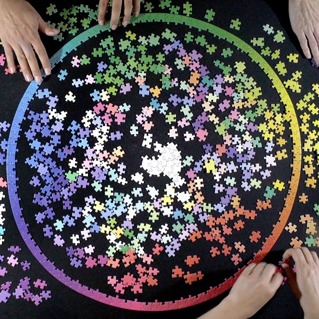 Where play meets theory. The wheel demonstrates classic theories of harmonic and dissonant colour schemes. Place each of the 1000 individual colours in perfect order to reveal the complementary, triadic and split complementary systems.