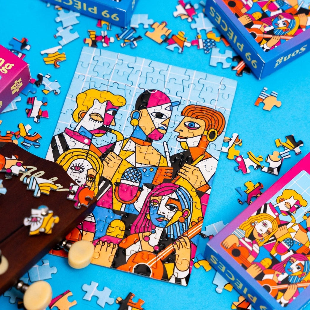 Designed and imagined in Paris by Ghaith Hamdi: "This puzzle pays tribute to cubism with a dynamic musical scene, made of geometric shapes and vibrant colors."