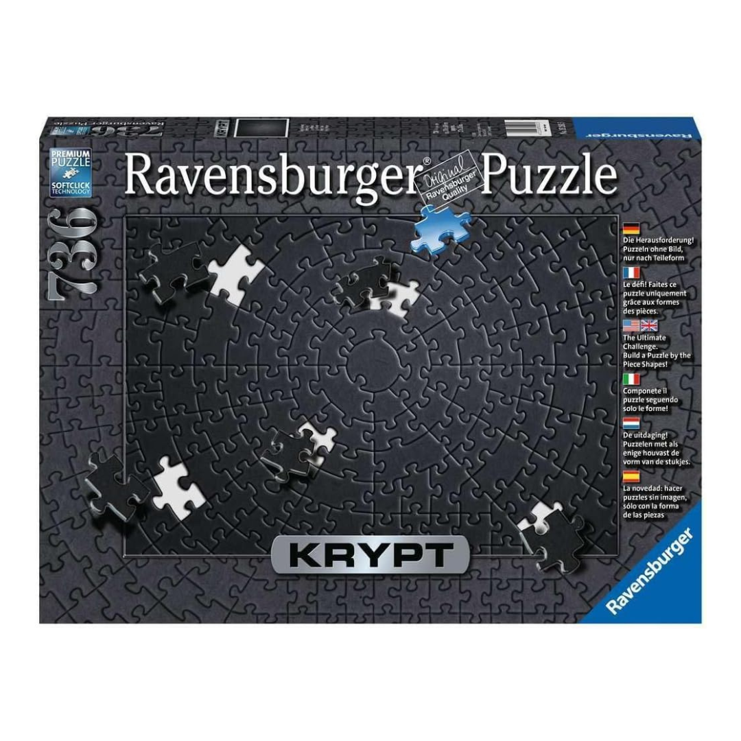 You see there's nothing to see. Krypto is the ultimate puzzle challenge for puzzle enthusiasts. No image to puzzle. All pieces come in the same color. The secret is in the pattern of the puzzle cut. 736 pieces - no two are alike. Ravensburger has been making the world's finest puzzles for over 130 years in Germany. Ravensburger puzzles for adults are made to fit precisely - no matter how large or small the puzzle pieces.