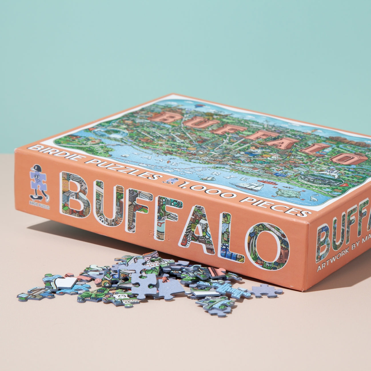 Discover all the cool quirks and unique oddities that makes Buffalo so great with this super fun and incredibly detailed 1,000 piece map puzzle. Featuring restaurants, shops, and icons that locals know and love; you'll have a blast exploring your favorites and discovering something new. Artist Mario Zucca's vibrant and crisp illustrations makes this puzzle a work of art and highly frame worthy. It's the perfect gift for every fan of Buffalo, NY. Made in the USA of high quality and durable Blue Kappa chipboard, soft touch puzzle finish, soy based inks and 100% recycled materials. You'll enjoy this puzzle for years.
