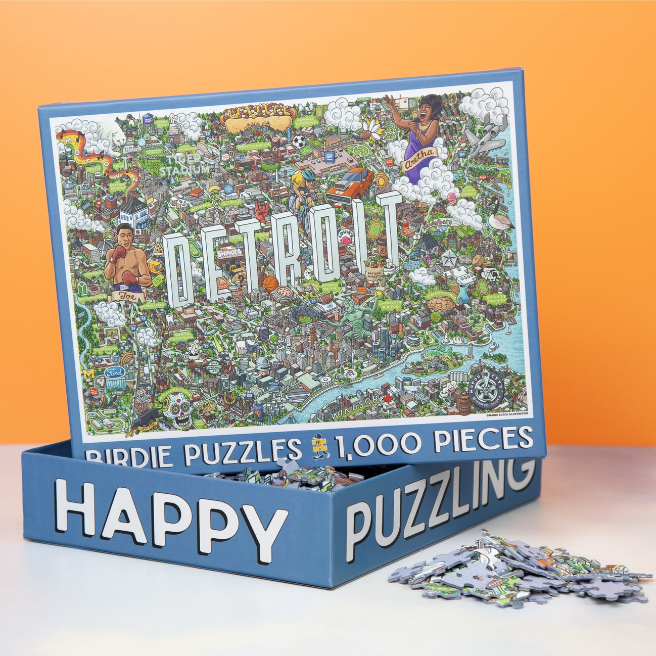 Discover all the cool quirks and unique oddities that makes Detroit so great with this super fun and incredibly detailed 1,000 piece map puzzle. Featuring restaurants, shops, and icons that locals know and love; you'll have a blast exploring your favorites and discovering something new. Artist Mario Zucca's vibrant and crisp illustrations makes this puzzle a work of art and highly frame worthy. It's the perfect gift for every fan of Detroit. Made in the USA of high quality and durable Blue Kappa chipboard, soft touch puzzle finish, soy based inks and 100% recycled materials. You'll enjoy this puzzle for years.