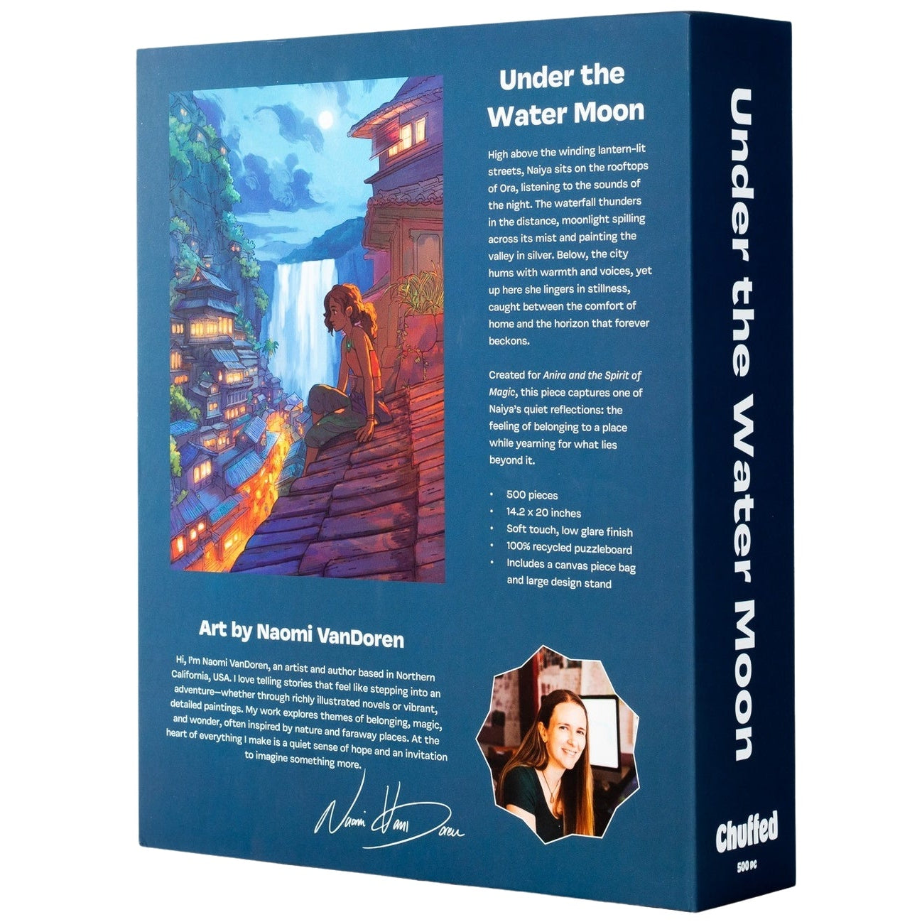 High above the winding lantern-lit streets, Naiya sits on the rooftops of Ora, listening to the sounds of the night. The waterfall thunders in the distance, moonlight spilling across its mist and painting the valley in silver. Below, the city hums with warmth and voices, yet up here she lingers in stillness, caught between the comfort of home and the horizon that forever beckons.