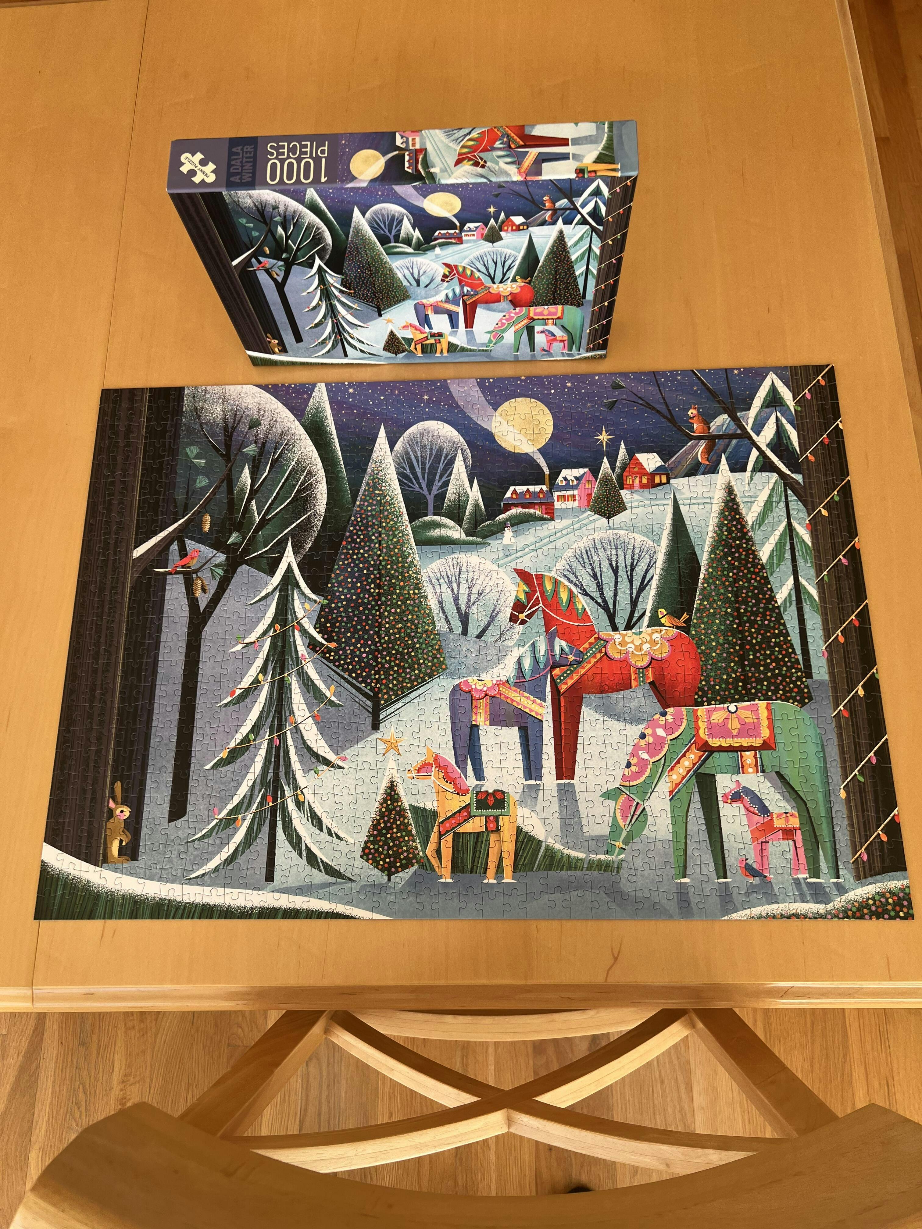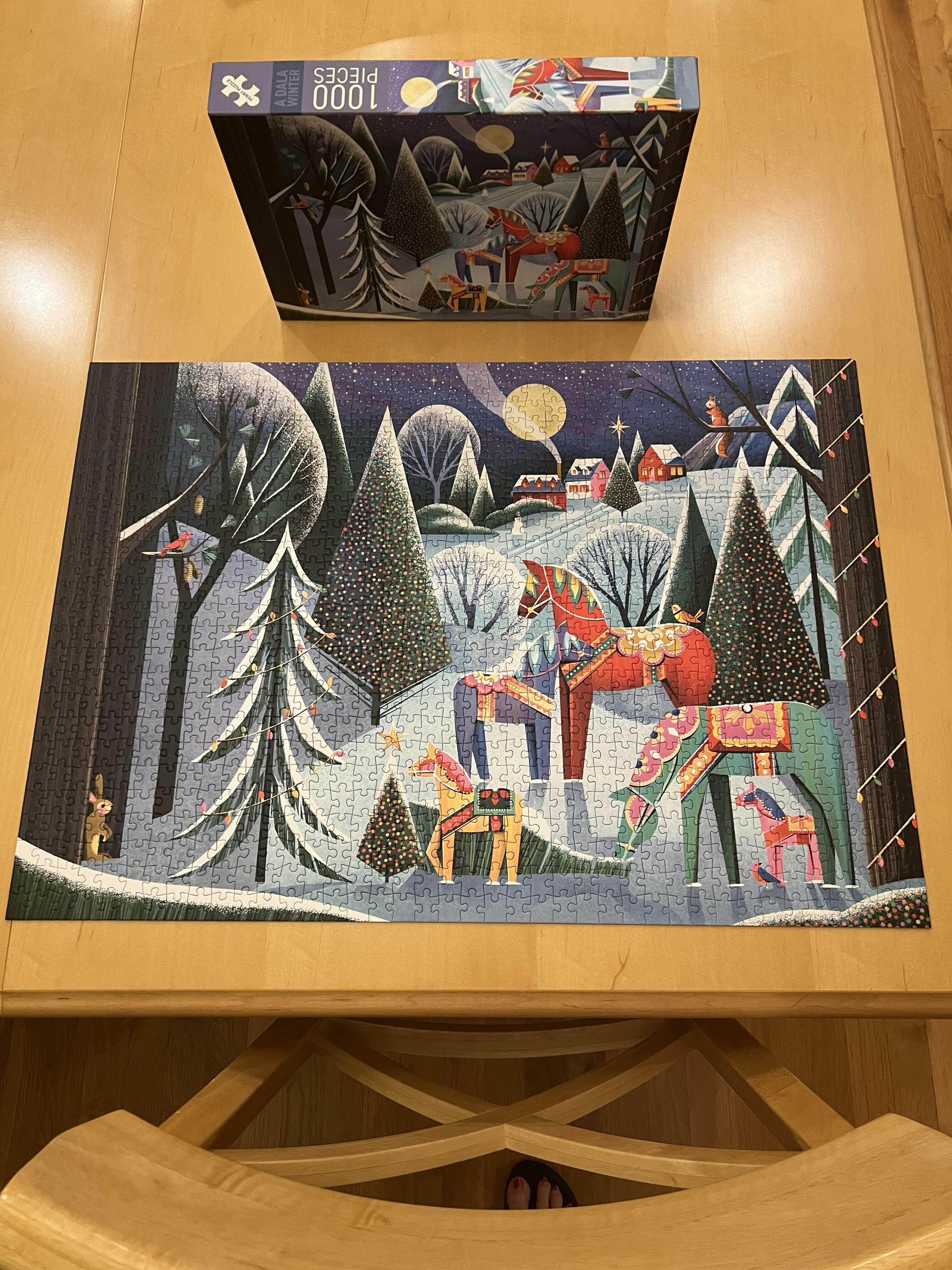 This was my second Penny Puzzle. I just adore this brand! The quality is outstanding and the artwork is beautiful! The challenge level is perfect- there are clues to keep you going so I never got stuck! I was so enthralled that I finished it all in one Saturday. I have purchased two more and am excited to work on those in the new year!