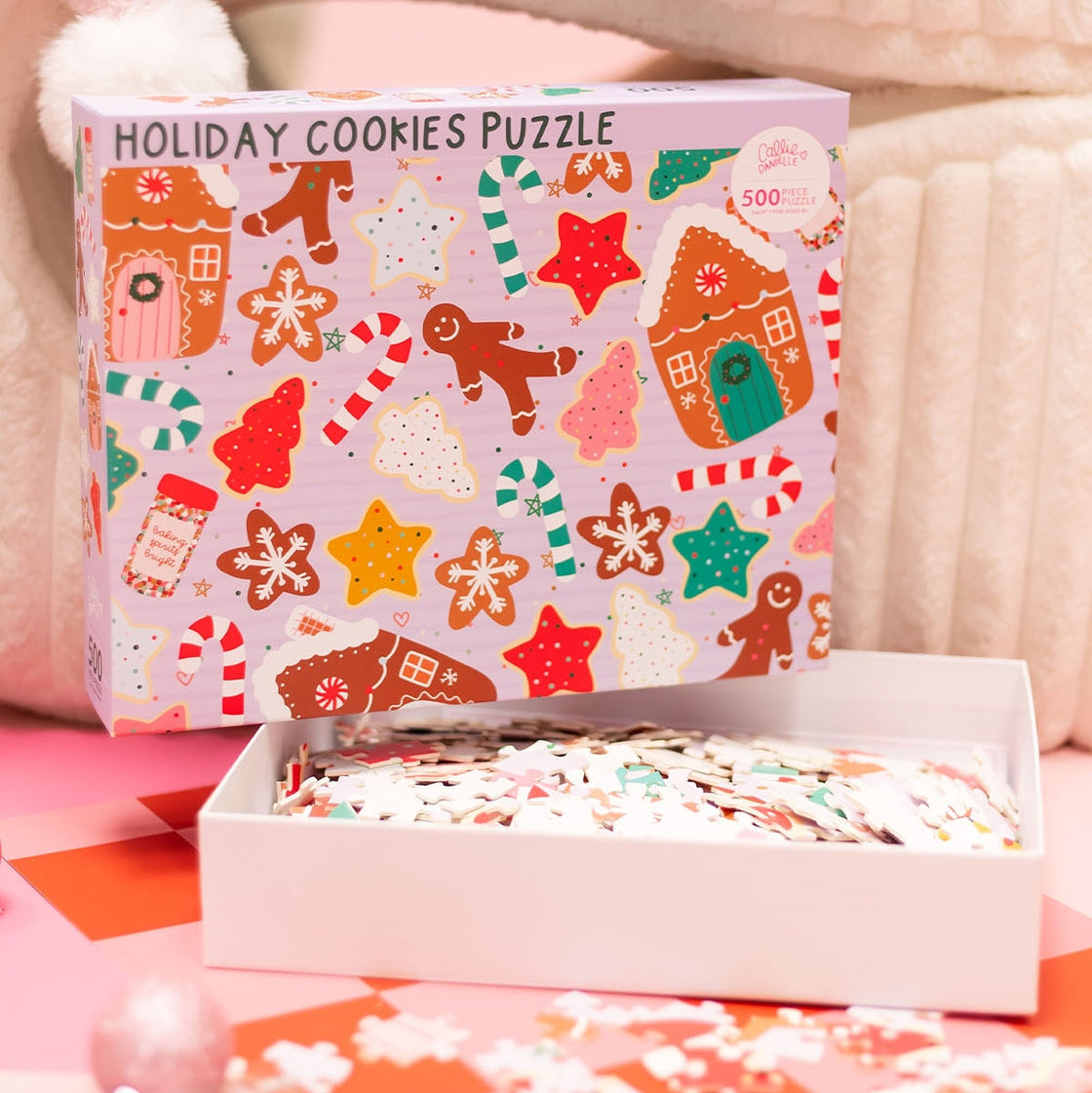 Piece together the sweetest holiday scene with the Holiday Cookies 500 Piece Christmas Jigsaw Puzzle! Featuring a festive spread of gingerbread houses, sugar cookies, and candy canes, this puzzle is perfect for a cozy winter night by the tree or a fun holiday activity with family and friends. The whimsical hand-drawn design makes it a thoughtful Christmas gift for bakers, puzzle lovers, and holiday enthusiasts.