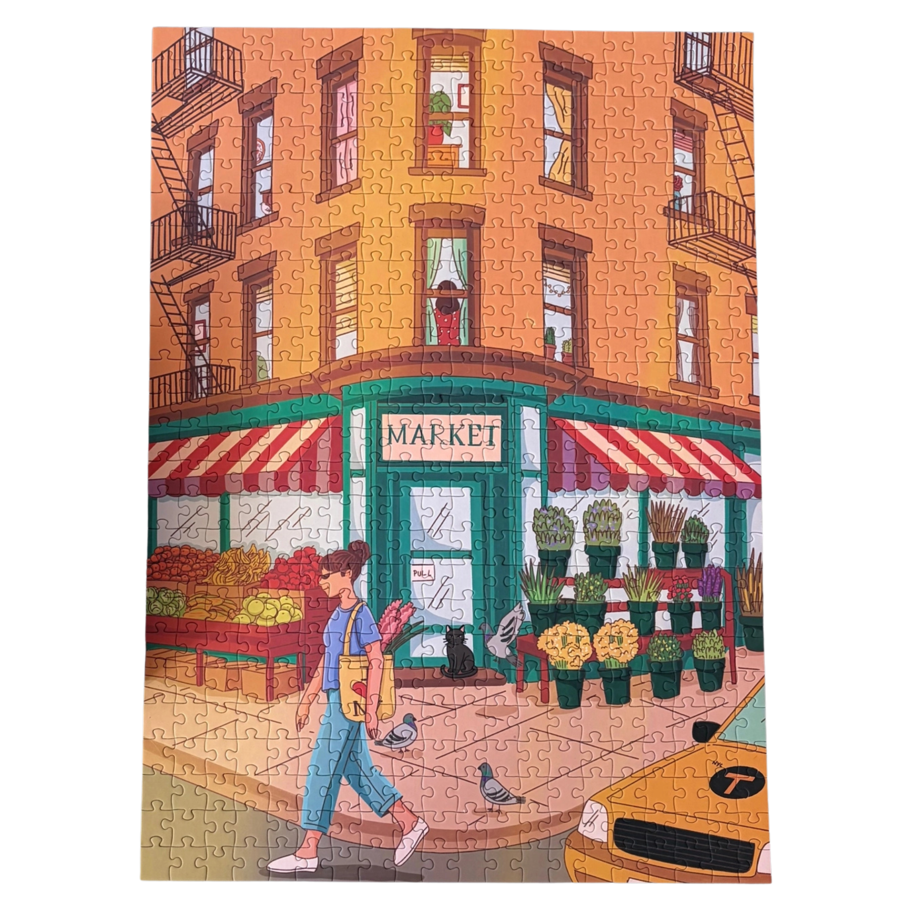 Take a stroll through the neighborhood with this vibrant slice of New York life. Corner Market captures the charm of everyday moments — colorful awnings, corner florals, and the quiet hum of city living under beautiful, golden hour light. Each 500-piece puzzle comes beautifully packaged in our signature book-style box with a cotton pouch stamped “not quite put together.” Thoughtfully designed for your coffee table or bookshelf, it’s art you can piece together. Corner Market was Illustrated by Fanesha Fabre.