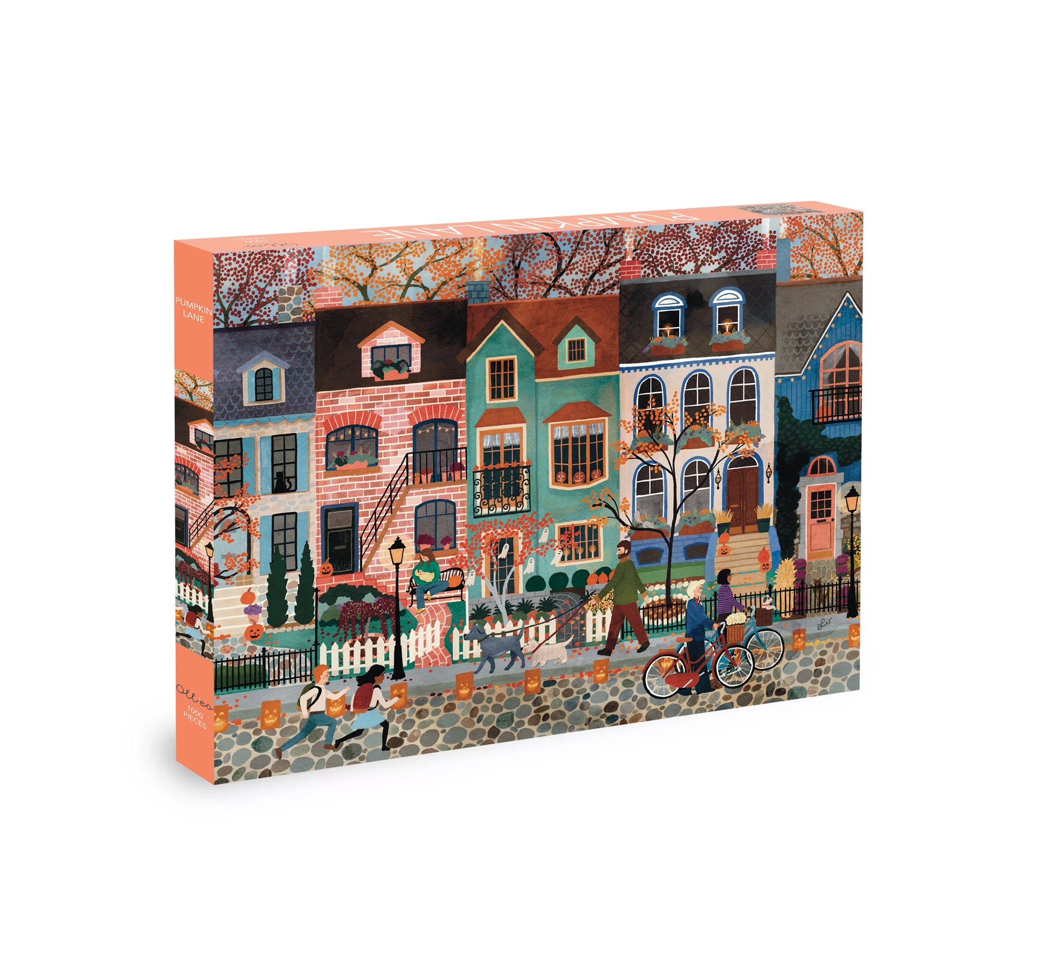 A lively street awakens before your eyes in this 1000-piece puzzle, filled with people for Halloween. The facades of houses and shops are adorned with pumpkins, lanterns, and autumn decorations, while passersby enjoy the festive and colorful atmosphere of the season. By reconstructing this lively scene, immerse yourself in the heart of urban Halloween, where colors, light, and energy come together in a true street celebration.