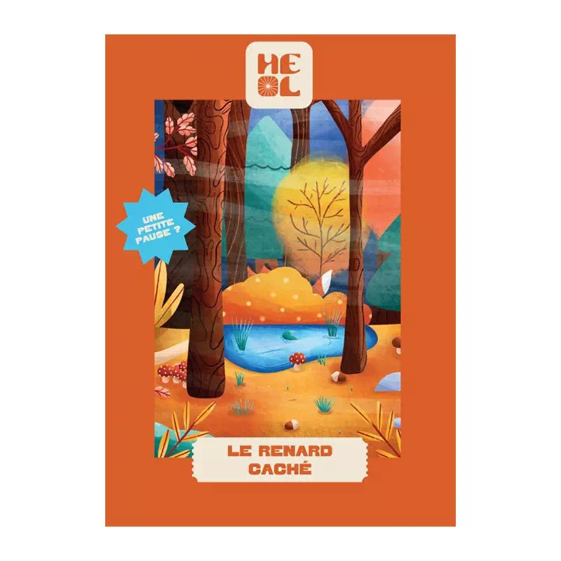 The mini puzzle The Hidden Fox is a puzzle consisting of 99 pieces from the brand Les éditions Heol. Illustrated by Amarillon Studio, a French artist, this mini-puzzle is a gentle walk in the heart of the forest in autumn, where an adorable little fox hides behind a large bush.