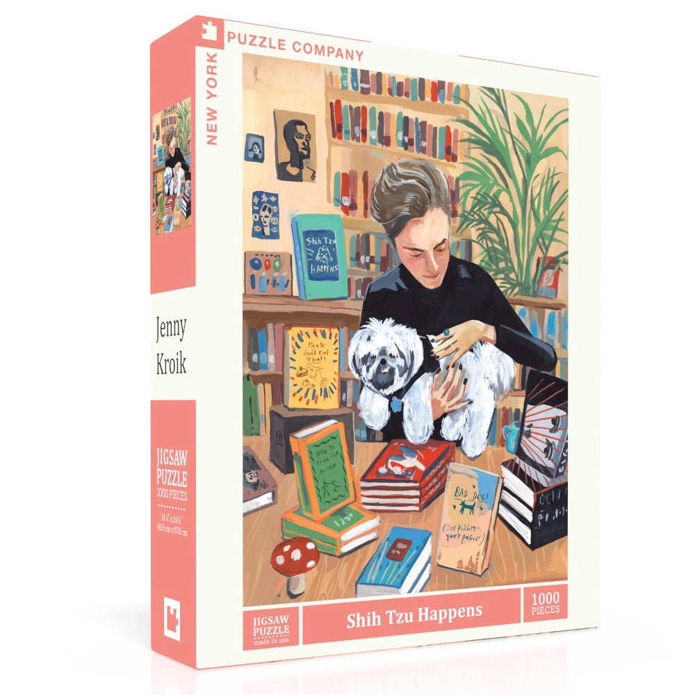As you puzzle, clever book titles tucked throughout the shelves add layers of humor and discovery. From How to Train Your Human to Please Don't Eat That, each title delivers a knowing wink to pet parents everywhere. Jenny Kroik’s signature style shines through in the expressive characters, inviting setting, and perfectly observed everyday comedy.