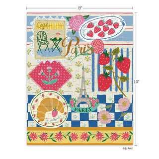The WerkShoppe Paris Cafe | 100 Piece Jigsaw Puzzle features vibrant imagery of a Paris cafe, strawberries, flowers, and the Eiffel Tower—ideal for kids to enjoy hours of creative play.