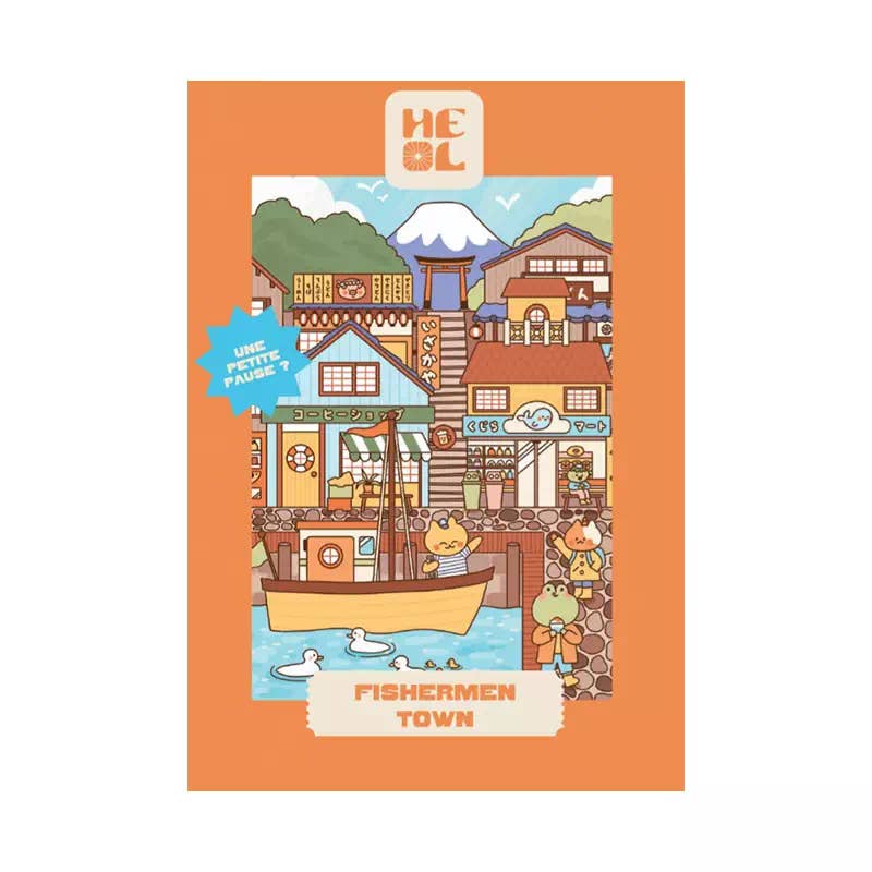 The mini puzzle Fishermen Town is a puzzle consisting of 99 pieces from the brand Les éditions Heol. Illustrated by Niniwanted, a French artist, this micro puzzle takes you to this small seaside village, with its colorful houses and adorable inhabitants. You can even see a fishing cat returning from its journey on the open sea.