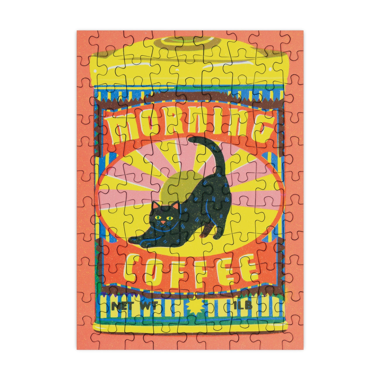 99 Piece Mini Jigsaw Puzzle featuring a fun illustration of a coffee tin by Naomi Wilkinson.