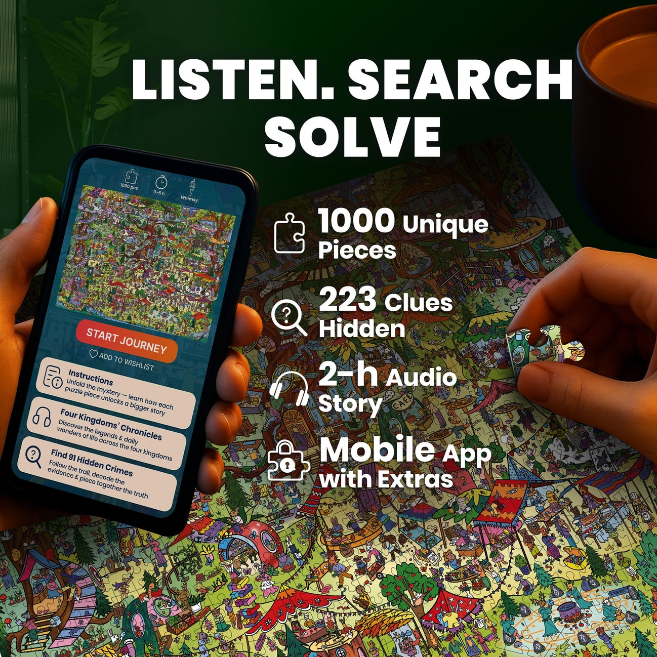 Every inch of the artwork is filled with tiny characters, hidden jokes, and 223 visual secrets waiting to be discovered as you piece together this enchanted forest realm.