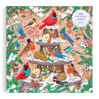 Galison’s Festive Feathers | 500 Piece Jigsaw Puzzle showcases Olga Akbarova’s colorful bird and winter decoration illustrations on a festive tiered tray.