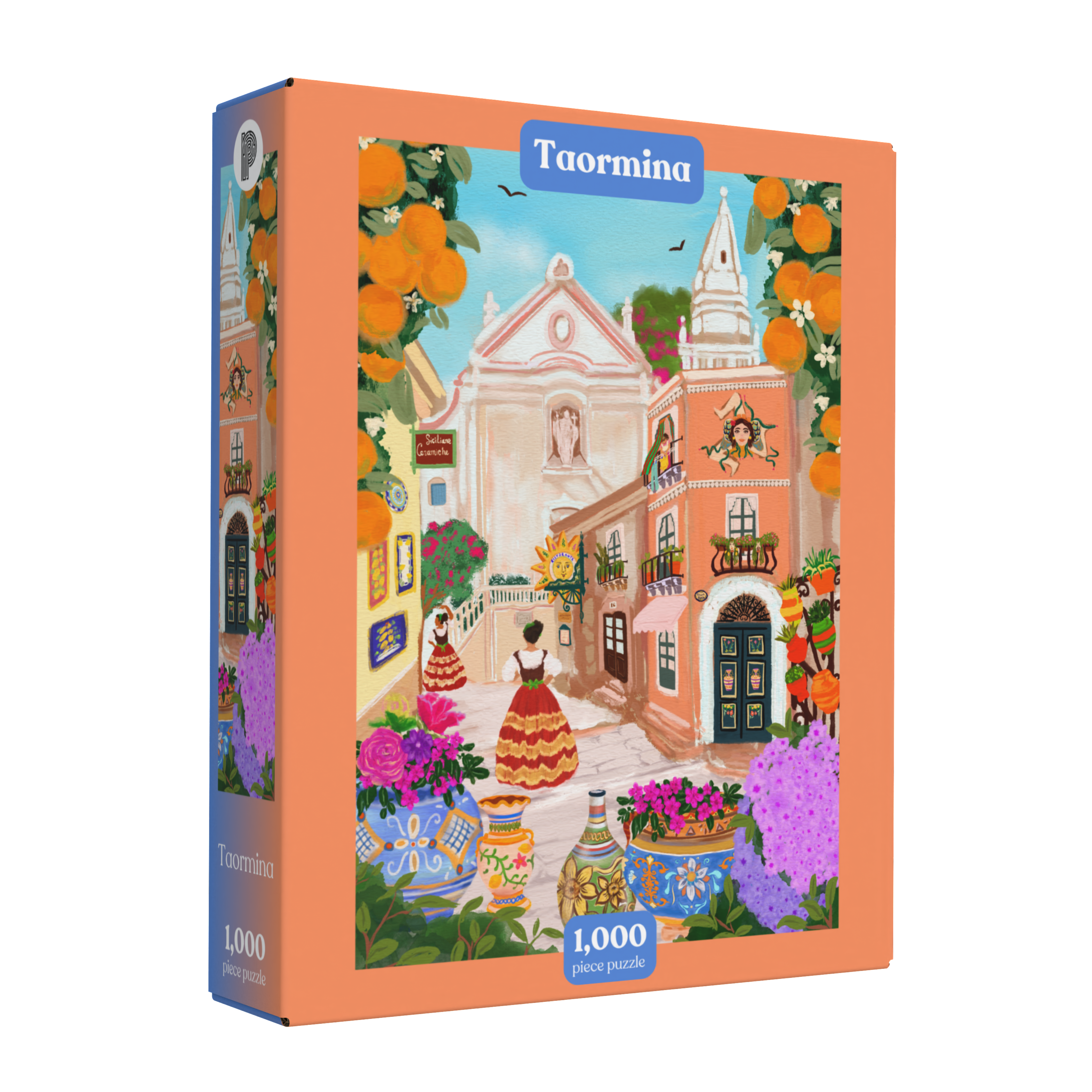 Transport yourself to the sun-kissed streets of Taormina with this vibrant jigsaw puzzle!