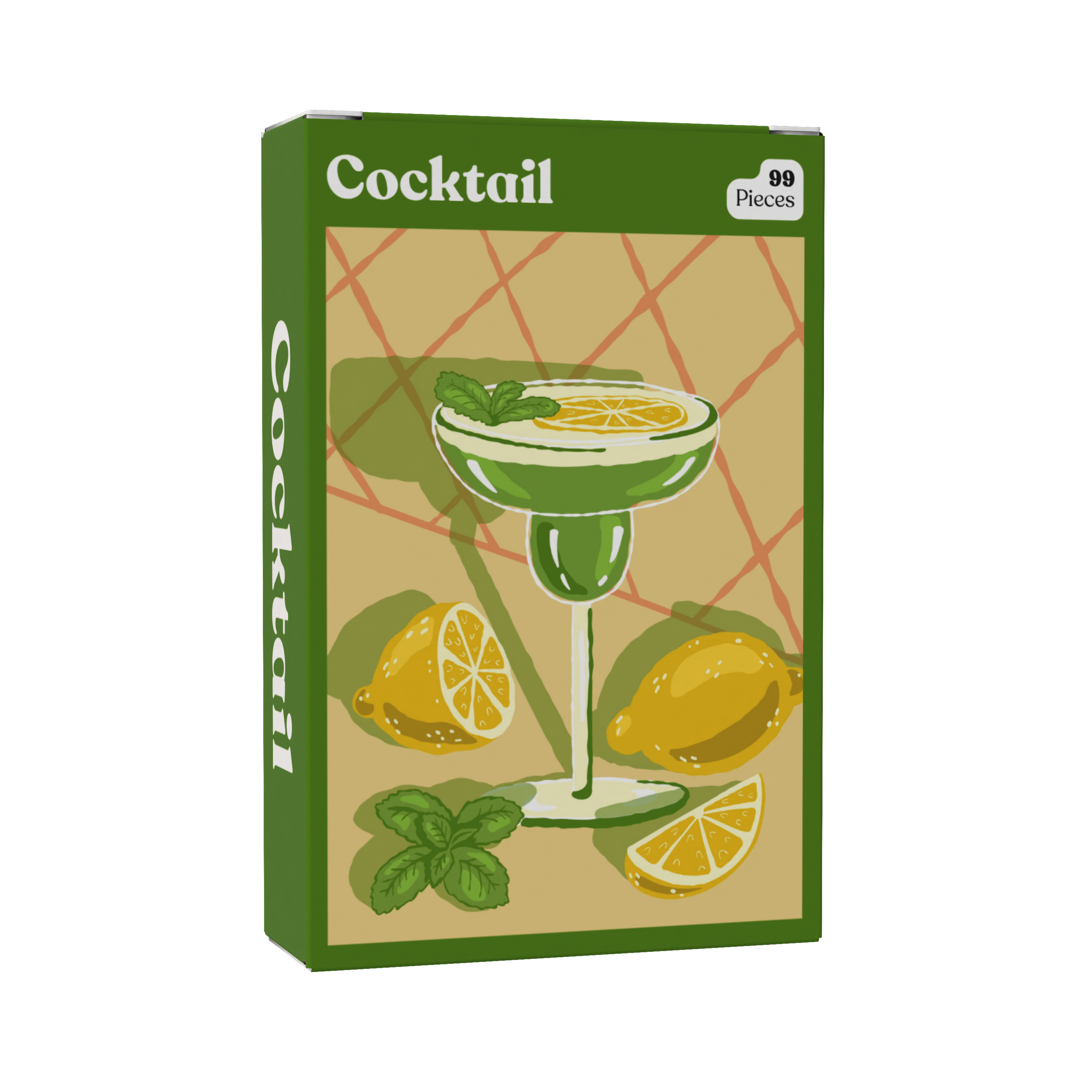 Shake up your mini puzzle collection with this 99-piece pocket puzzle—measuring just 4″ × 5.5″ when complete—featuring a crisp green cocktail coupe brimming with a zesty lemon-mint libation.
