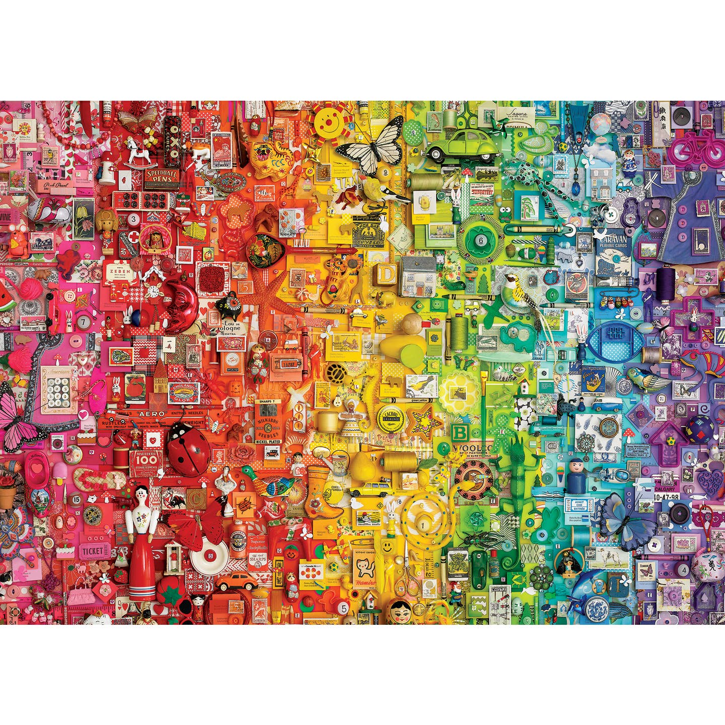 A Colourful Rainbow filled with lots of delightful treasures waiting to be discovered. This is a condensed version of the 2000 piece Rainbow puzzle created by Shelley Davies for Cobble Hill.