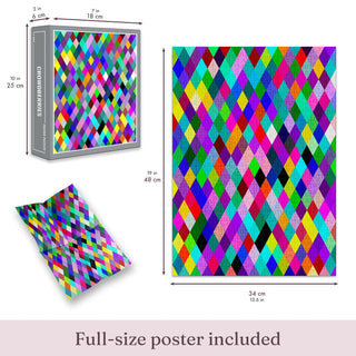 What happens when you let hundreds of puzzlers design a jigsaw together? We decided to find out, making jigsaw puzzle history in the process! This puzzle was designed and named collaboratively by hundreds of Puzzle Nerds. When you buy this one, you're not just getting a puzzle – you're getting a piece of puzzle history! The nerdiest puzzle project ever? Puzzlers were invited to choose a shape from a predefined grid on our website. Then, they could choose which colour they’d like their section of the puzzle to be. Entries were submitted in isolation, and participants were prevented from seeing which colour neighbouring sections had been given, or whether their submission ‘fitted in’ with the rest of the design. Once all sections of the puzzle were coloured in, we revealed the final design on social media, attracting thousands of likes and comments... and suggestions for what to call the puzzle.