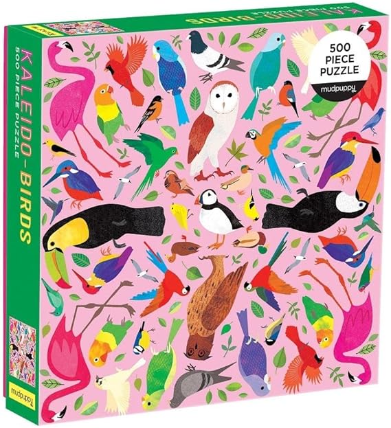 The Kaleido-Birds 500 Piece Family Puzzle is the perfect activity for families with children 8 years and older. You will have hours of fun assembling this boldly illustrated puzzle. This jigsaw puzzle from Mudpuppy features a beautiful illustration of colorful birds arranged in a pattern inspired by the amazing view through a kaleidoscope, and will provide families hours of fun, quality entertainment.